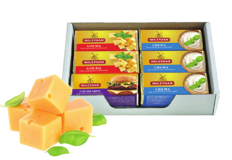 Molendam processed cheeses are made from high-quality raw materials of our own production: premium quality hard cheese, butter and sour milk cheese, which is why Molendam processed cheese is so tasty and tender!